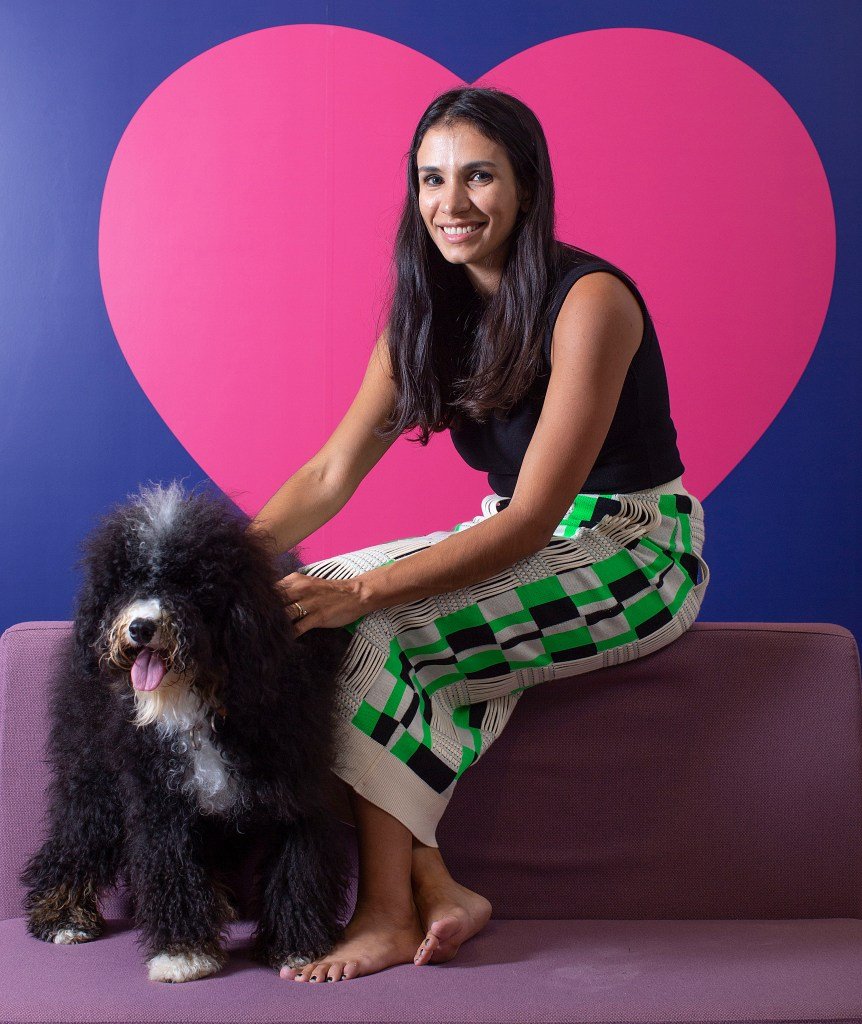 Talita Lacerda, CEO da Petlove, com a sua pet May (Petlove/Divulgação)