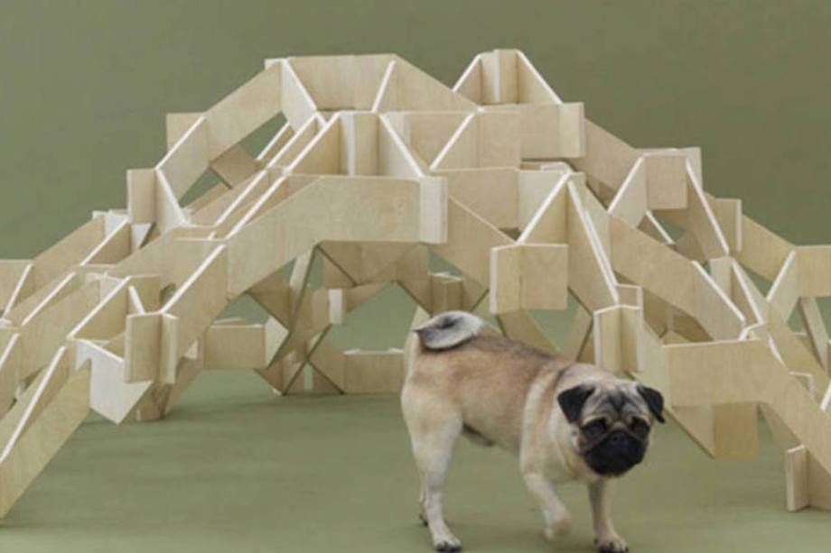 9. Kengo Kuma criou esse sistema de componentes de madeira para a raça pug. O cachorro pode sentar dentro ou escalá-lo