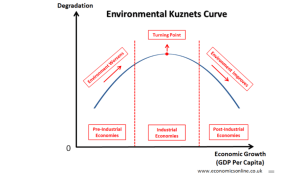 Há também um fator econômico fundamental que raramente é mencionado: a chamada Curva de Kuznets Ambiental. Trata-se de uma hipótese segundo a qual a relação entre crescimento econômico e impacto ambiental segue o formato de um “U invertido”. Nos estágios iniciais de desenvolvimento, a prioridade das sociedades é produzir, gerar empregos e garantir condições mínimas de vida, o que leva a maior uso de combustíveis fósseis, desmatamento e poluição. Porém, à medida que a renda média cresce e os países se tornam mais prósperos, essa tendência se reverte: populações mais ricas passam a demandar qualidade de vida, ar limpo, energia renovável e cidades sustentáveis. Além disso, o avanço tecnológico e a maior disponibilidade de capital permitem que governos e empresas adotem padrões produtivos mais eficientes e ambientalmente corretos.