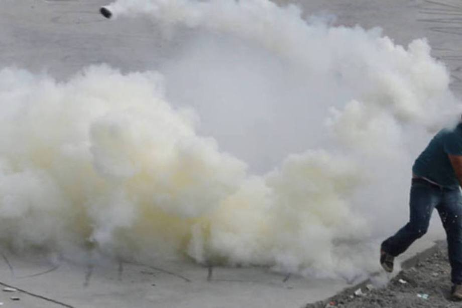 4. Policial dispara bomba de gás lacrimogêneo contra manifestantes