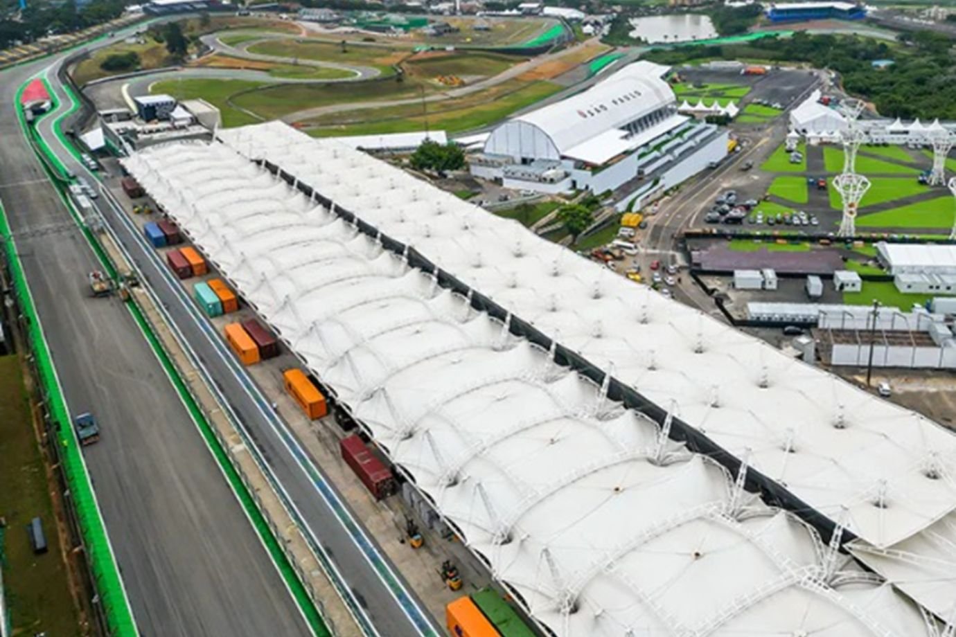 Experiência diversificada: o Grupo DMDL atua em setores como concessões, esportes, educação, saúde, tecnologia, instituições públicas e privadas; na foto, estrutura para a F1, em Interlagos (SP) (DMDL/Divulgação)