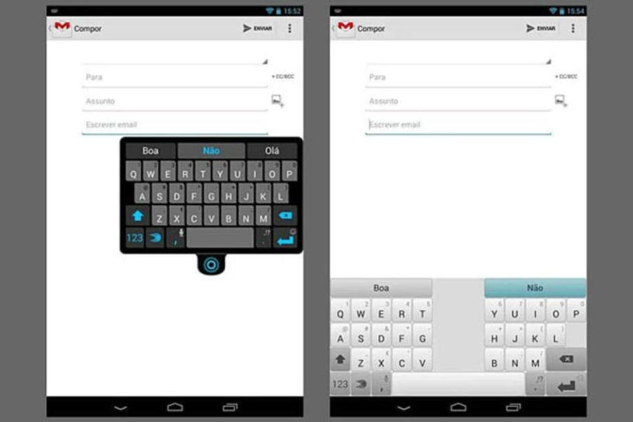 Embora haja apps que possuem seu próprio teclado no iOS, o Android é muito mais flexível nesse aspecto. O usuário pode instalar o teclado que preferir e habilitá-lo como padrão para todos os aplicativos.