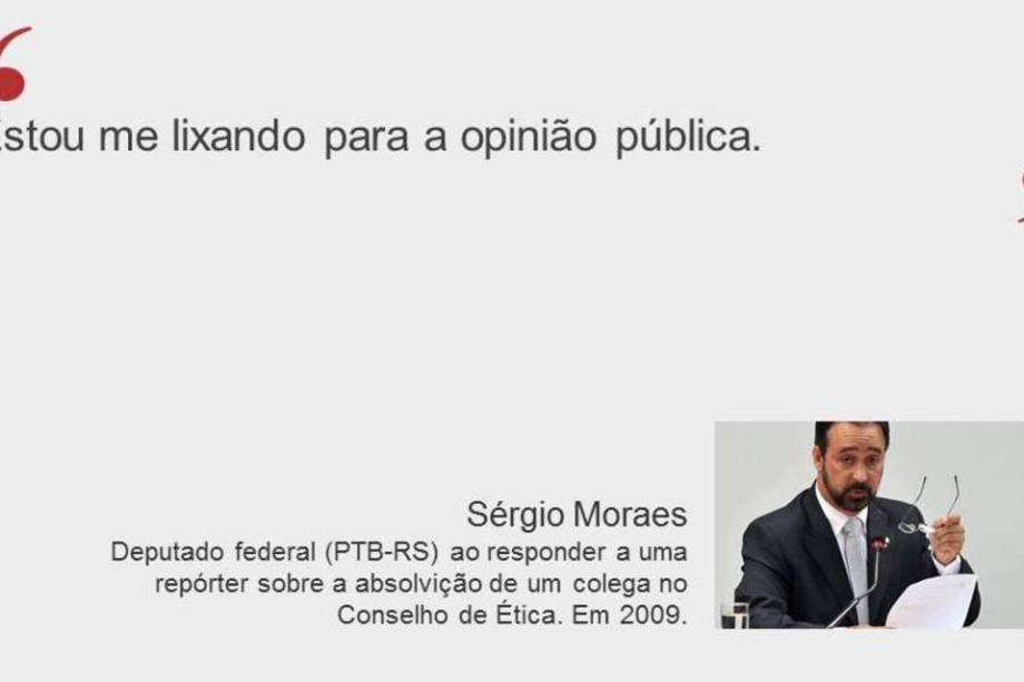 Como Moraes explica a frase: A polêmica declaração de Moraes foi dada quando ele era relator de um processo contra o ex-deputado Edmar Moreira (PR-MG), que ganhou notoriedade por possuir um castelo no interior de Minas Gerais e foi investigado por ter destinado recursos de verba indenizatória da Câmara para empresas de sua propriedade. Moraes pretendia absolver Moreira e, quando foi questionado sobre a possível reação da opinião pública, disse a frase que o deixou famoso.