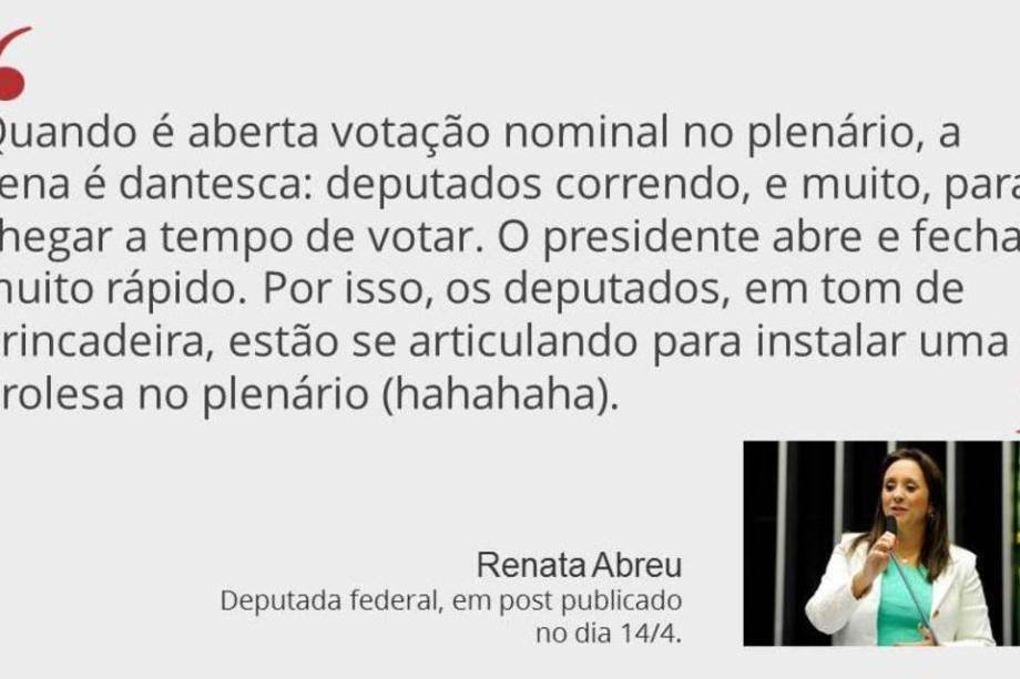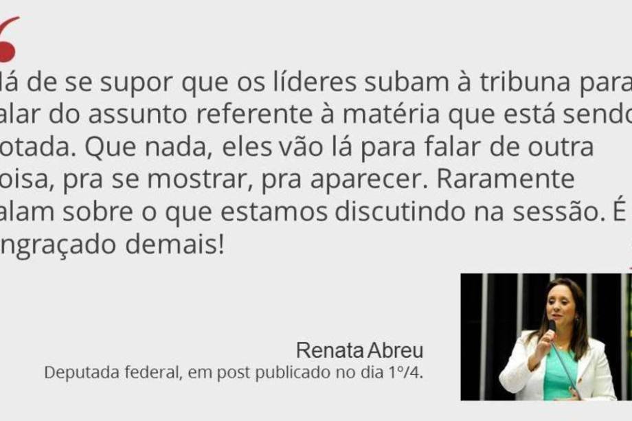Renata Abreu - Tudo o que escrevo no blog são coisas que não se imagina antes de conhecer o Congresso. É um pouco a diferença entre a expectativa e o que eu encontrei.