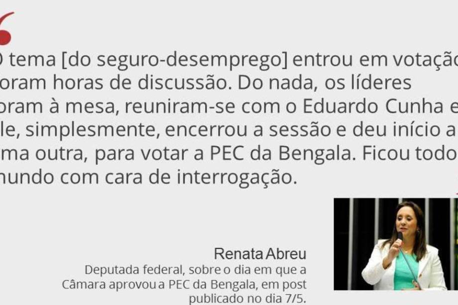 Brasília. “Eu via uma necessidade de compartilhar com o eleitor minhas lutas, minhas frustações. Fazer com que esse eleitor não só critique, mas que fale com conhecimento de causa”, disse em entrevista a EXAME.com. Filha do ex-deputado José de Abreu, Renata foi eleita com 86.647 votos pelo nanico PTN (Partido Trabalhista Nacional), partido do qual é presidente estadual em São Paulo. Na conversa, a parlamentar fala sobre o que precisa mudar no Congresso, explica suas posições na Comissão da Reforma Política e diz que não gostava de política antes de ser candidata. Leia a seguir os principais trechos da entrevista que a deputada concedeu a EXAME.com. E veja nos slides acima as melhores frases de Renata Abreu em seu blog, o