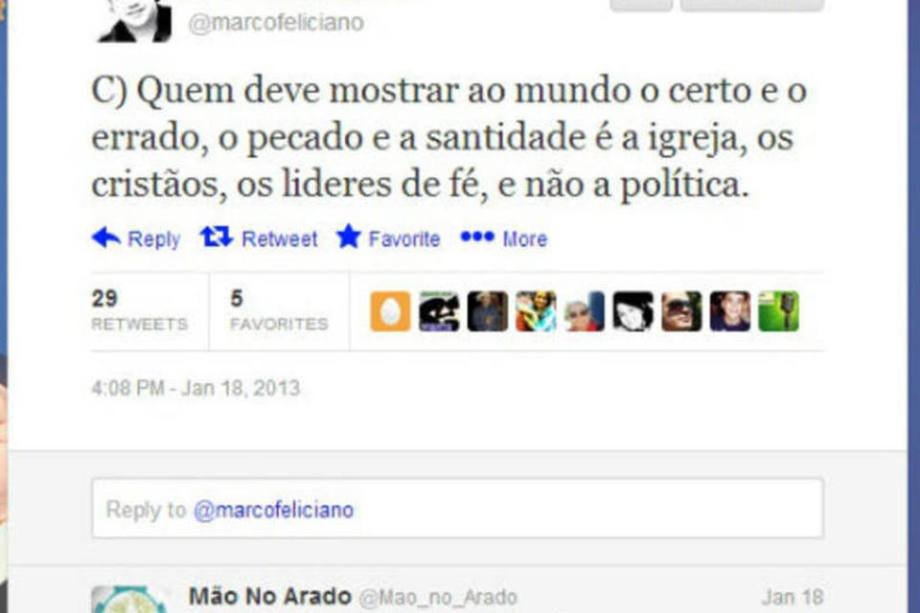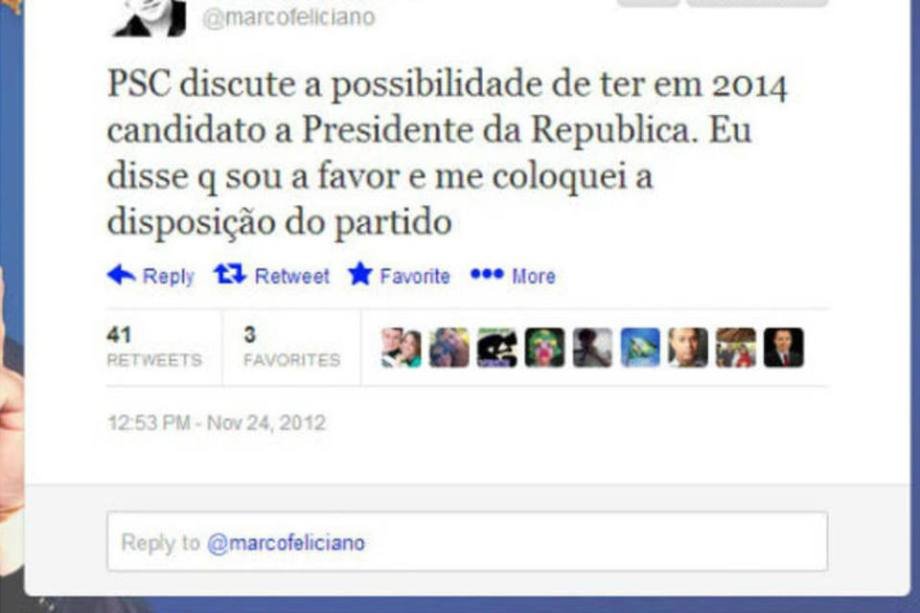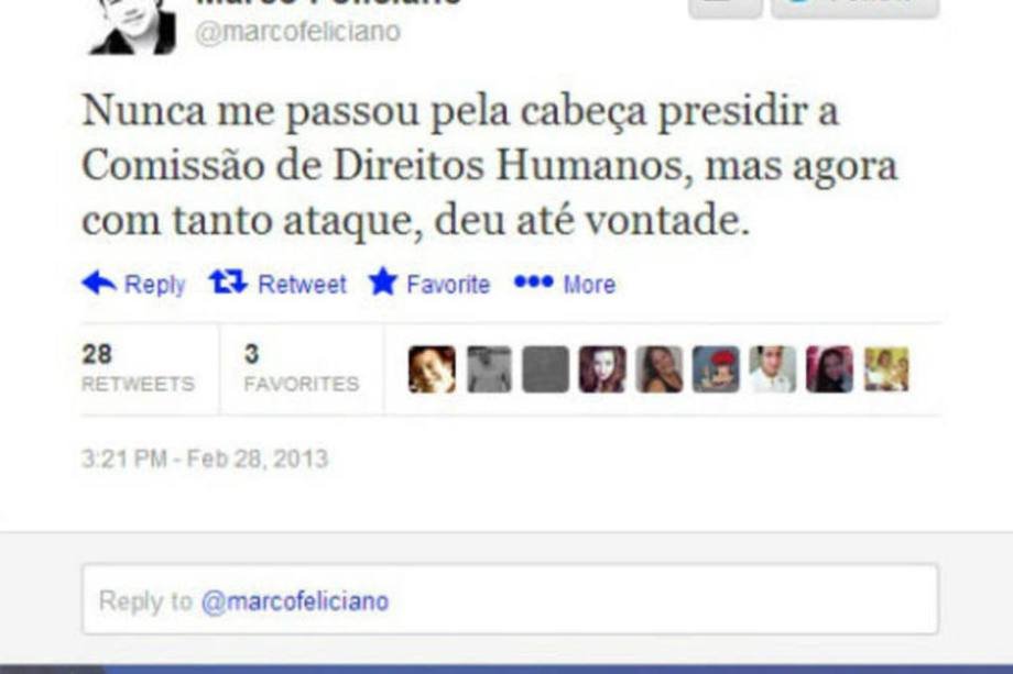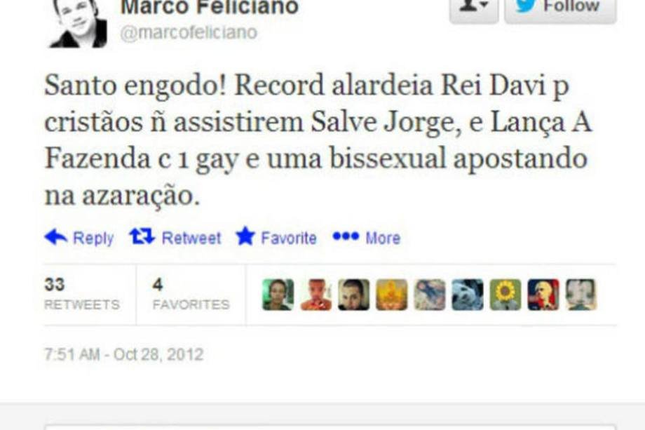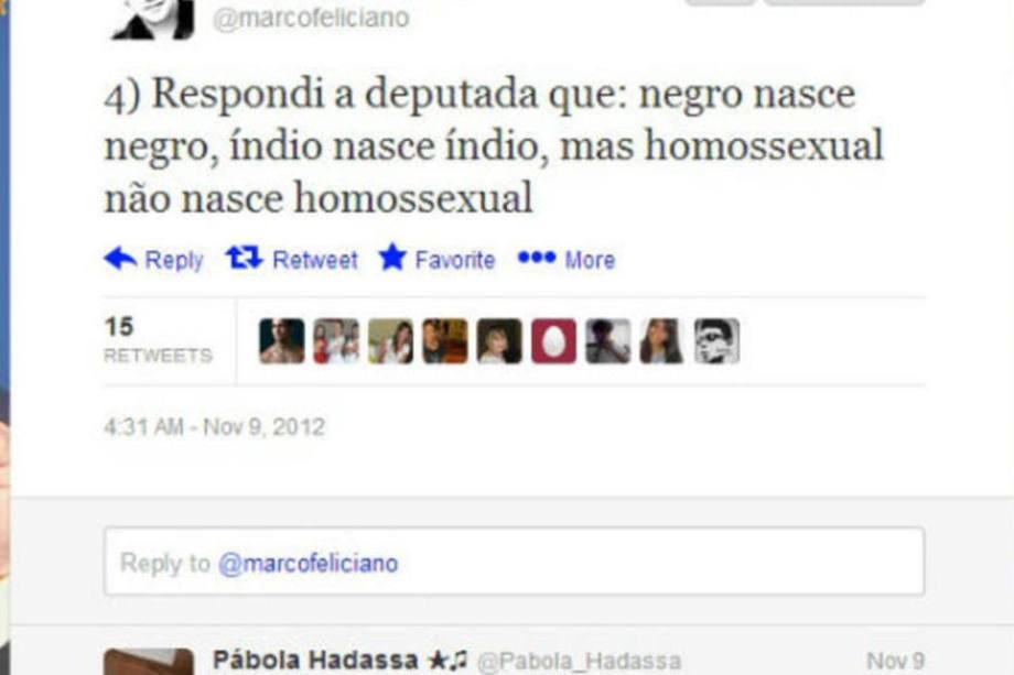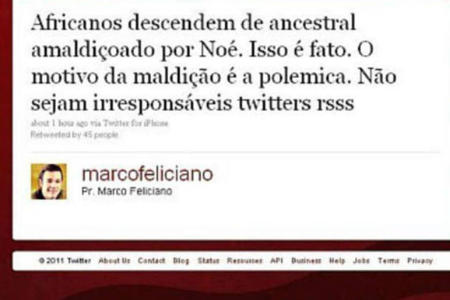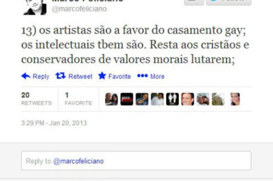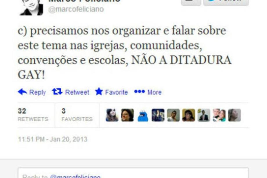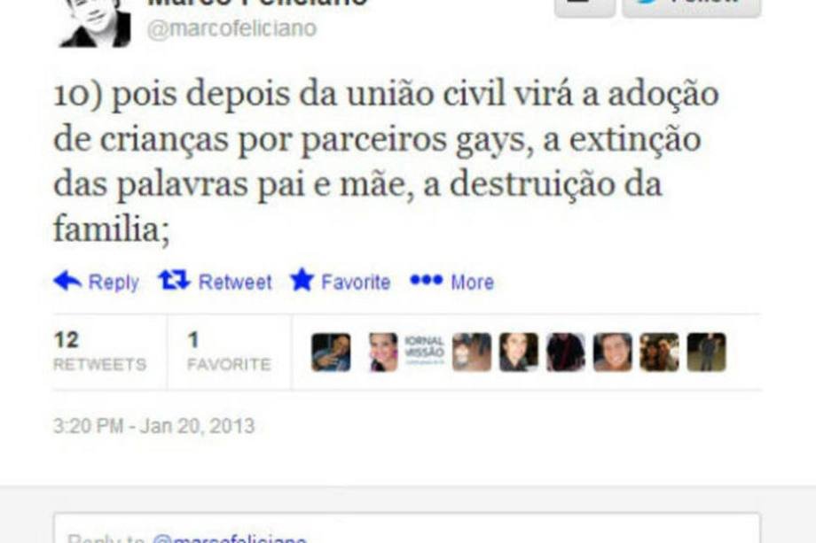 São Paulo - "A podridão dos sentimentos dos homoafetivos levam ao ódio, ao crime, à rejeição". Foi esse post, não mais disponível no Twitter, que levou o novo presidente da Comissão de Direitos Humanos da Câmara, Marco Feliciano (PSC-SP), a correr o perigo de responder pelo crime de "discriminação" no Supremo Tribunal Federal (STF). A pena prevista é de um a três anos de prisão.