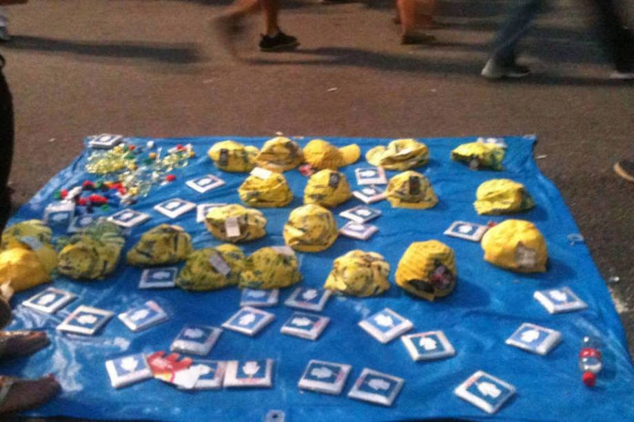 Para aguentar todo esse tempo e manter a animação, os vendedores ambulantes foram essenciais. Camisas do Brasil, apitos, buzinas, bandeiras de diversos tamanhos, assim como faixas e outros adereços de cabeça deram o tom verde e amarelo à multidão.