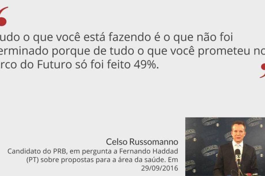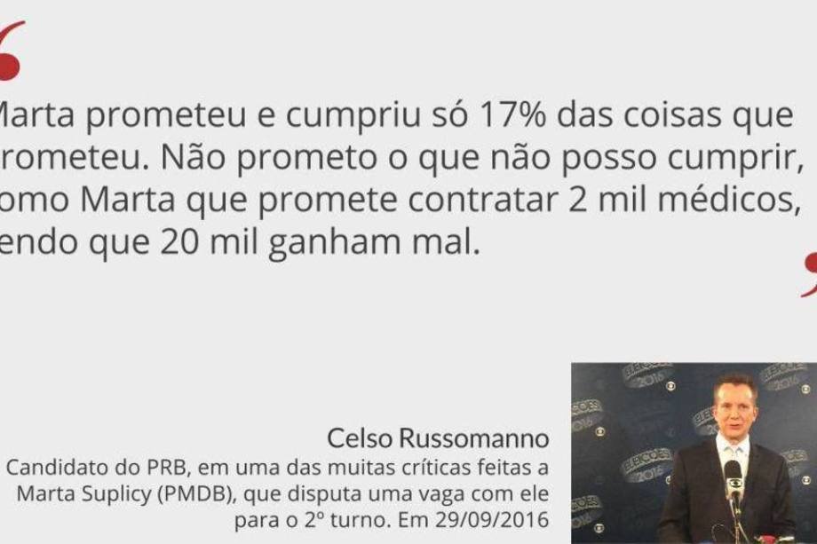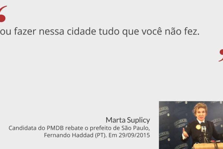 O debate – que foi morno na maior parte do tempo – teve seus momentos intensos de embates. Após Luiza Erundina (PSOL) criticar Doria, chamá-lo de lobista e dizer que ele defende privatizações mesmo tendo recebido uma série de repasses de dinheiro público em convênios de suas empresas, o peessedebista afirmou que tem uma visão mais moderna e ironizou a idade da adversária. “Respeito muito sua biografia mas ela é diferente da minha. Sou empresário, sou gestor, sou trabalhador. A minha é moderna, atual, transformadora.” A candidata do PSOL não perdeu a oportunidade de alfinetá-lo. "Você é tão velho quanto qualquer político velho. Ser moderno é privatizar cemitério?”. Numa última investida para conquistar votos na reta final da campanha, Erundina tentou colar em Marta a gestão do presidente Michel Temer (PMDB). Ela criticou a dificuldade que Marta tem de fazer autocrítica sobre o governo Temer e disse, que dessa maneira, a oponente não será uma boa prefeita para São Paulo. "A crise que estamos vivendo não é fruto deste governo de poucos meses. É culpa da incompetência de Dilma Rousseff", retrucou a peemedebista. Sobre táxis e Uber, Haddad perguntou por que Russomanno vai desfazer o que está dando certo. Evitando subir o tom, o candidato do PRB afirmou que, da forma como está, é competição predatória e ninguém ganha dinheiro. "Você está enganado, eu não vou desfazer o que foi feito, vou corrigir". Mesmo tendo Haddad como alvo principal, Russomanno e Marta também trocaram ofensas. Ao falar de saúde, o deputado federal disse que não podia prometer o que não podia cumprir, “como Marta que promete contratar 2 mil médicos, sendo que temos 20 mil médicos que ganham mal". A devolução da peemedebista veio nas considerações finais. “A disputa no segundo turno estamos eu, Russomanno e Haddad. Russomanno tem vários escândalos com trabalhadores. Até com questões de garçons, que não pagou. Isso está na Justiça, não sou eu que digo. É o juiz eleitoral que está aí na propaganda contando para ele e para todo mundo”, afirmou Marta. Na sequência, o candidato do PRB afirmou que Marta acabara de mentir. “Ao longo de toda a minha vida sempre dei a minha cara a tapa para defender as pessoas. A Marta se esconde atrás de um comercial de televisão. Gastou 400 comerciais para falar mal de mim. Ela mente descaradamente”, disse Russomanno. Com alguns momentos quentes, o debate ficou aquém das expectativas para os eleitores que esperavam fortes emoções. Ataques entre Haddad, Marta e Russomanno devem prevalecer até o último programa eleitoral antes da ida do eleitorado às urnas. Veja, nas frases, os melhores momentos. Veja também o que os candidatos falaram após o debate: