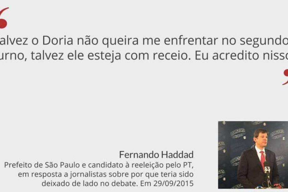 Em dois dos quatro blocos do debate, Haddad não recebeu perguntas de nenhum adversário. Ao todo, respondeu a apenas três perguntas. Ainda assim, foi o alvo das críticas dos principais opositores: Doria, Marta e Celso Russomanno (PRB). Já no primeiro bloco, o tucano e a peemedebista demonstraram que jogariam juntos para atacar Haddad. A estratégia teve uma grande utilidade para Marta: atribuir a si mesma a imagem de prefeiturável anti-PT. Tudo, porém, foi feito discretamente, já que nenhum dos dois citou o prefeito em suas críticas mais duras. Para atingir o petista, Marta perguntou a Doria qual seria sua proposta para a periferia e aproveitou para dizer que o atual administrador da capital paulista “virou as costas” para quem vive nas regiões menos favorecidas. “Não entregou o que prometeu. Dos 20 CEUs, entregou um, das 49 UBS (Unidades Básicas de Saúde), entregou muito menos”, alfinetou a peemedebista. Em sua resposta, Doria não poupou Haddad e disse que o prefeito não cumpriu quase nada do que prometeu e que sua gestão deixou a desejar. “Não é justo que mais de 500 mil pessoas estejam esperando por exames. Não é razoável que mais de 103 mil crianças estejam fora das creches”. Em outras três oportunidades, Marta e Doria trocaram figurinhas sobre a atual administração municipal. Não economizaram nas críticas em vários setores, como habitação e saúde pública. Além deles, Russomanno se juntou a Doria para criticar a “indústria da multa”, que, segundo eles, foi criada por Haddad. O candidato do PRB defendeu o fim da prática e prometeu mudar o limite de velocidade das marginais. O tucano, por sua vez, destacou que é preciso acabar com as “multas pegadinhas”. O diagnóstico é que Doria já se vê no segundo turno – e a maioria de seus adversários também tem essa percepção - e que Marta e Russomanno preferiram atacar Haddad para ficarem sozinhos na disputa pela outra vaga. Por outro lado, Haddad se mostra confiante na possibilidade de ir para o segundo turno e afirmou, em entrevista à imprensa depois do debate, que acredita ter sido deixado de lado porque Doria teme enfrentá-lo. “Talvez ele esteja com receio, eu acredito nisso”, afirmou Haddad. E lembrou que, nas últimas eleições, em 2012, virou o resultado das pesquisas eleitorais na última semana. Haddad também disse que atrairia os votos de Marta por “coerência”. “As pessoas percebem quando você não tem mais consistência naquilo que você fala pelo seu posicionamento político. Quando você perde a identidade, como ela perdeu, você esfarela”, criticou o prefeito. Já Marta negou que tenha evitado um enfrentamento com o petista, mas admitiu que “privilegiou” Doria nas perguntas. “Ele tem muito mais tempo na televisão para falar de si mesmo e se apresentar do que eu tenho. Isso foi para expô-lo mais para que ele apresentasse suas propostas e as pessoas que estão em casa pudessem comparar nossas experiências”, afirmou a candidata do PMDB. Doria saiu pela tangente e disse que não houve mudança neste debate. “Não houve nenhum entendimento prévio. A disputa dela [Marta Suplicy] é com Fernando Haddad e Celso Russomanno”. O candidato do PRB, por sua vez, afastou a possibilidade de o mesmo cenário de 2012 se repetir e ele cair ainda mais nas pesquisas poucos dias antes da votação. “Vamos lutar até o final”, disse Russomanno.