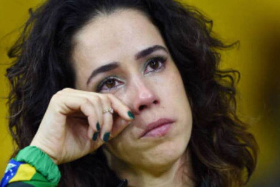4. Mulher não consegue segurar o choro diante de derrota do Brasil para a Alemanha na semifinal da Copa do Mundo