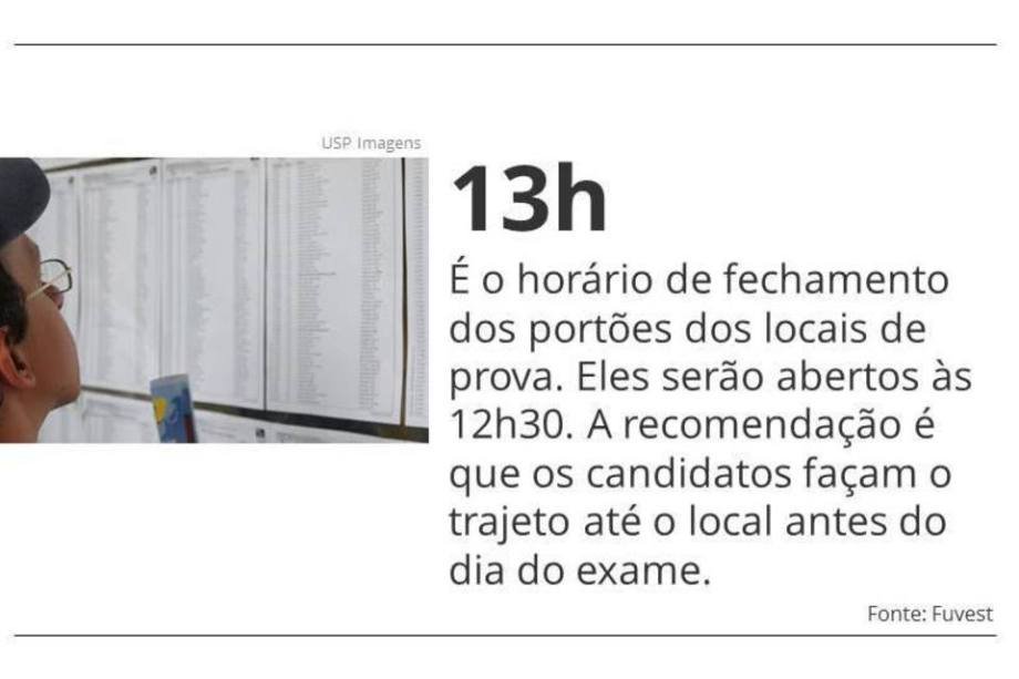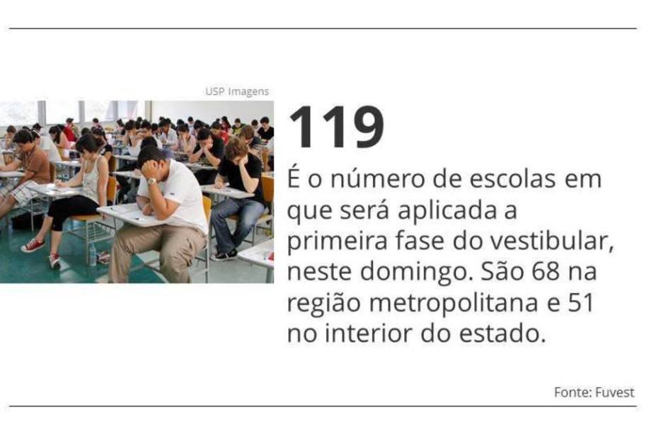 O teste será aplicado em 119 escolas espalhadas pelo estado de São Paulo. Os portões dos locais de prova serão abertos às 12h30 e o exame começa às 13h.