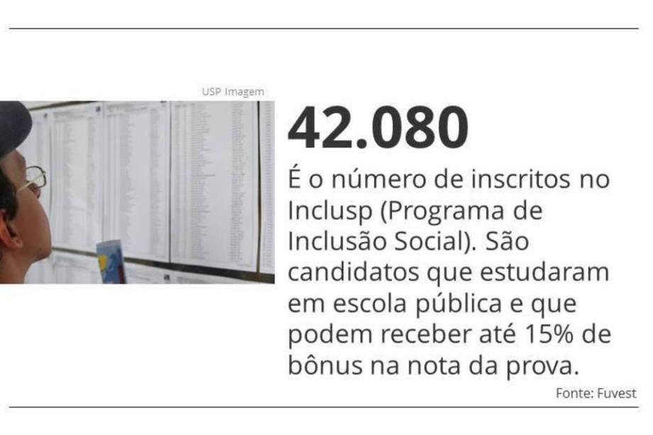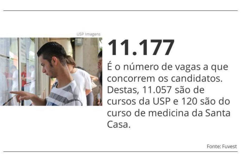 Os estudantes disputam uma das 11.177 vagas dos cursos de graduação da Universidade de São Paulo (USP). O exame também seleciona candidatos para o curso de medicina da Santa Casa.