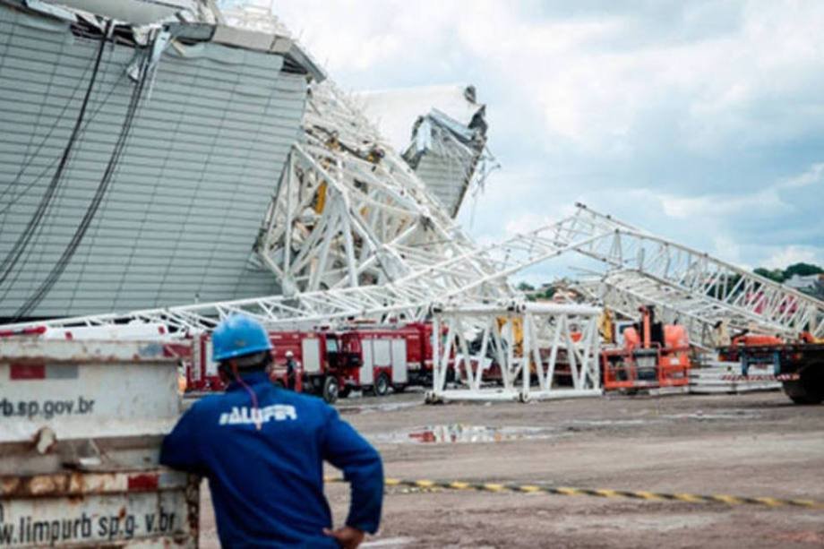 A queda de um guindaste de 500 toneladas destruiu parte da cobertura do Itaquerão faltando 6 meses para a abertura da Copa. O motorista Fabio Luis Pereira, de 42 anos, e o montador Ronaldo Oliveira Santos, de 44 anos, morreram na tragédia. O acidente levantou preocupações sobre possíveis atrasos na entrega do estádio, que sediará a abertura da Copa do Mundo.