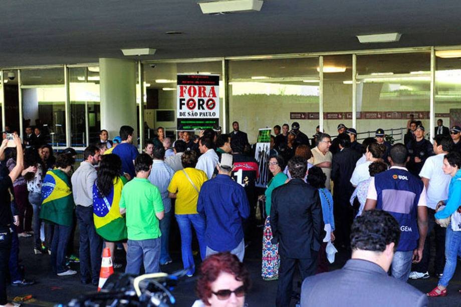 1. 	Manifestantes no Congresso que se opõem à aprovação da manobra fiscal