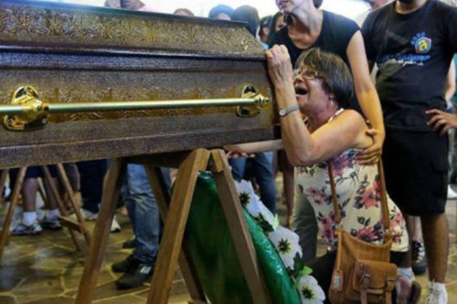 16. Parentes de uma vítima do incêndio em uma boate em Santa Maria, no Rio Grande do Sul, choram no funeral em 27 de janeiro