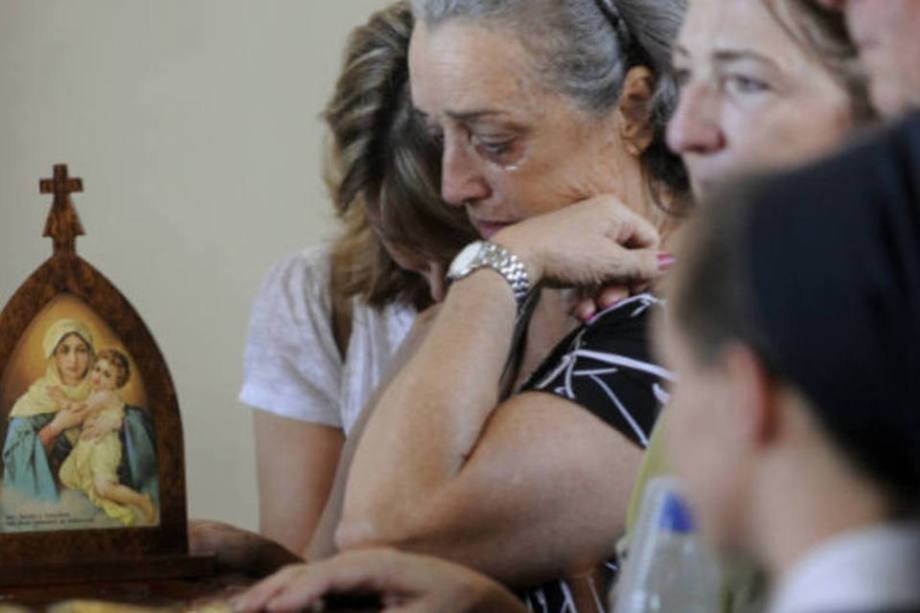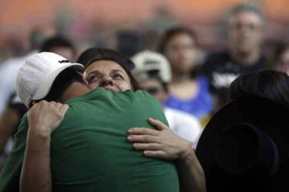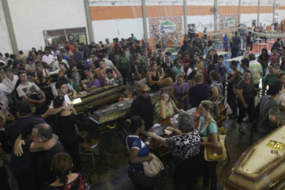 22. Parentes de vítimas do incêndio na Boate Kiss participam do velório coletivo na cidade de Santa Maria, Rio Grande do Sul