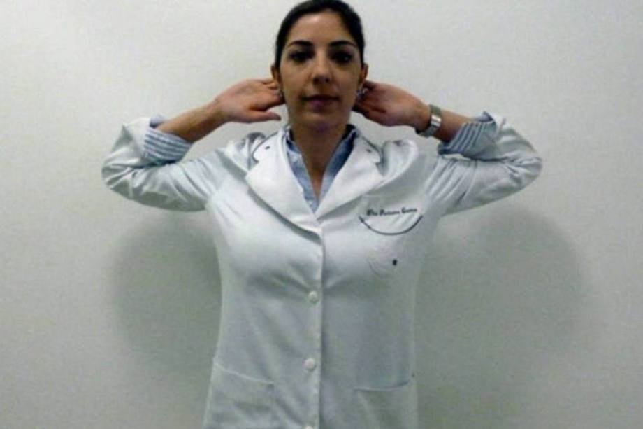 3. Bom para relaxar a parte posterior do pescoço e costas. Com as duas mãos na cabeça, olhe para baixo tentando encostar o queixo no tórax