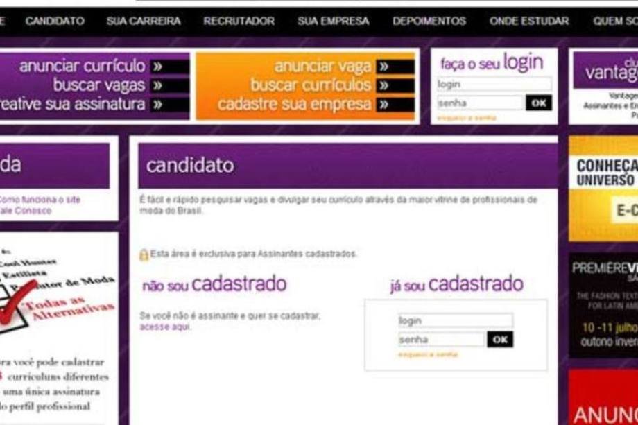 Voltado para a área de moda, o Carreira Fashion é o único da lista em que profissionais pagam para terem seus currículos disponíveis no site. Para as empresas não há cobrança de taxa. O site foi lançado em 2005, desde então 30 mil profissionais aderiram e 5 mil empresas estão cadastradas. De acordo com a equipe do site, 35% dos profissionais que divulgam seus currículos no site são contratados em prazo médio de 3 meses. É possível fazer a assinatura como profissional, estagiário ou freelancer. Mais informações: no Carreira Fashion
