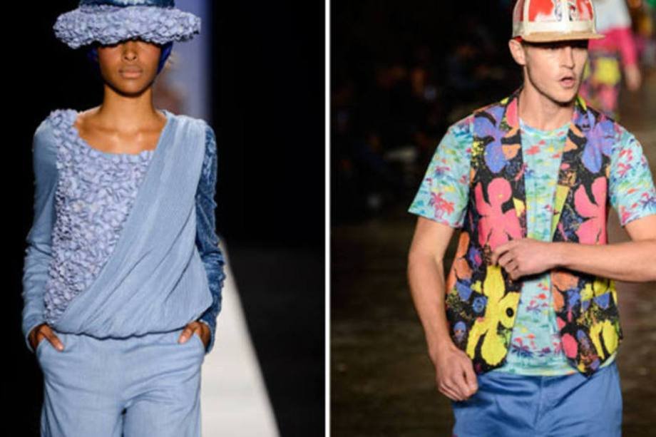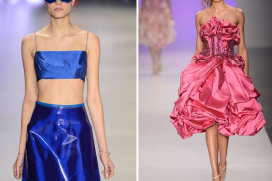 Apesar de uma força das peças brancas, off-white e pretas nos desfiles, os looks monocromáticos com cores vibrantes também apareceram e deverão despontar nas vitrines da estação mais quente do ano. As principais marcas que fizeram essa escolha foram Osklen (esq.) e Samuel Cirnansck (dir.), que apresentaram tons de rosa, verde, vermelho e azul.