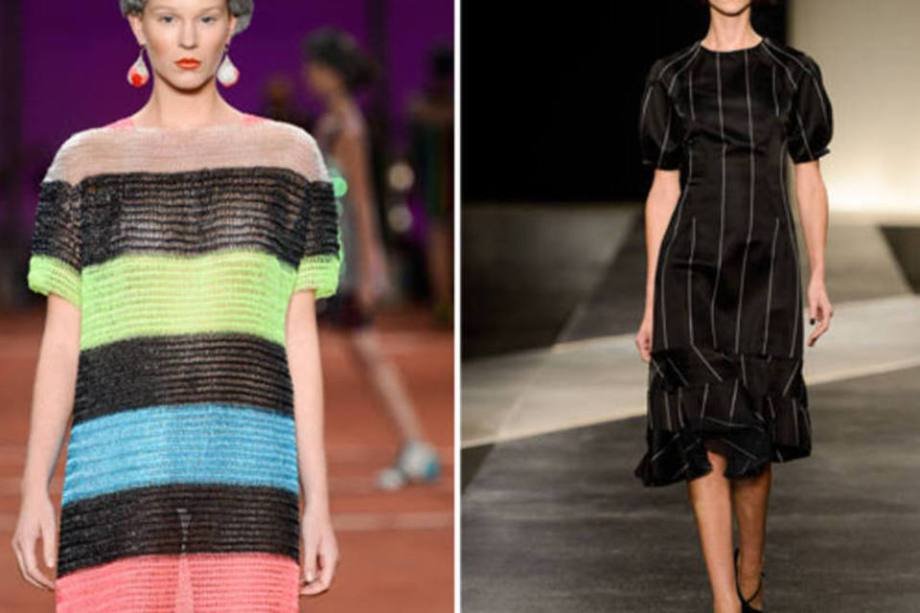 As listras, que já têm aparecido em outras temporadas de moda, vieram com força nesta edição da SPFW Verão 2014. Elas apareceram de várias maneiras: grossas, finas, descontruídas, coloridas, em preto e branco. Algumas das marcas que levaram modelos com esses traços foram Animale, Ronaldo Fraga (esq.) e Alexandre Herchcovitch (dir.).