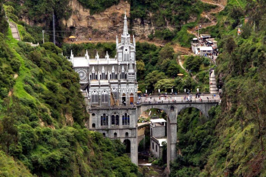País: Colômbia Preço dos hotéis (para sete dias de estadia): a partir de 688 reais Preço das passagens aéreas: a partir de 1.102 reais de São Paulo a Bogotá Localizado quase na fronteira com o Equador, no município de Ipiales, o Santuário de Las Lajas é uma basílica de pedra no estilo gótico cheia de arcos, mosaicos e torres. Ele fica a cerca de 50 metros de altura e é cercado por cachoeiras e outras belezas naturais. Todo ano, no dia 16 de setembro, devotos à Virgem de Nossa Senhora do Rosário vão até ao santuário para rezar ao lado da imagem da santa, que foi colocada em uma das torres da basílica.