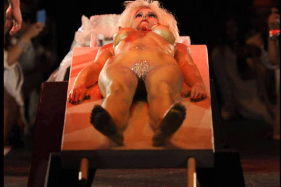 10. Close inferior de um bolo em forma de mulher. Alguém parece ter degustado o dedão de um dos pés.