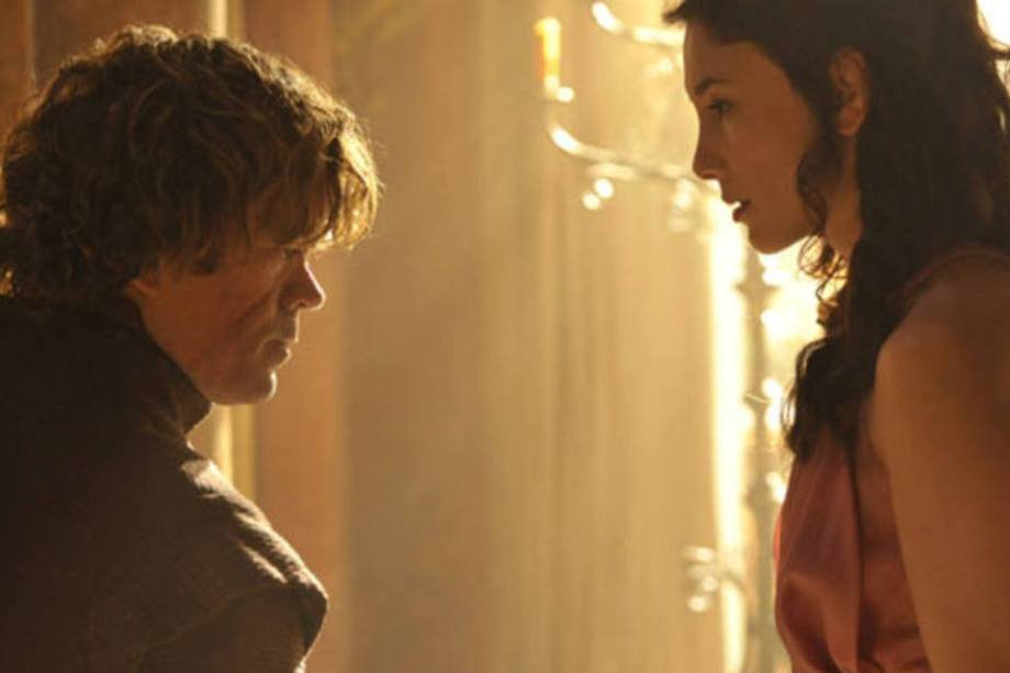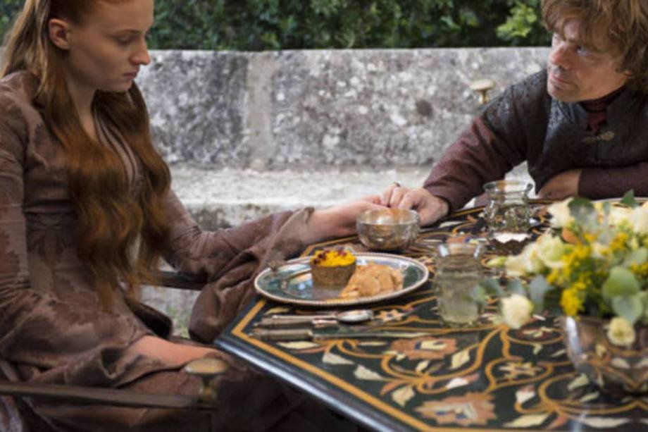 10. Tyrion Lannister fala com Sansa Stark, sentados à mesa