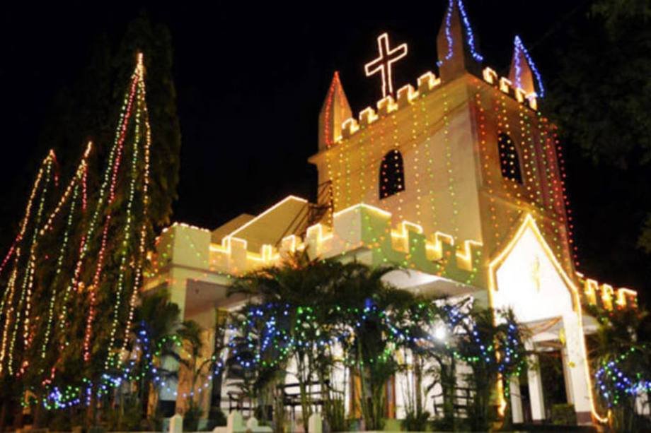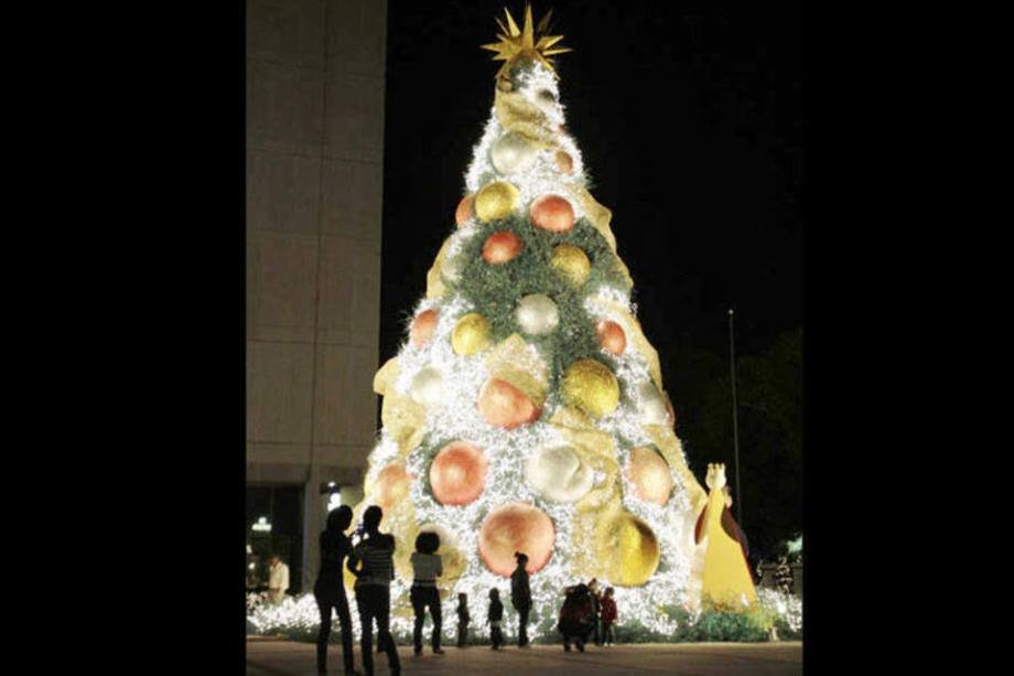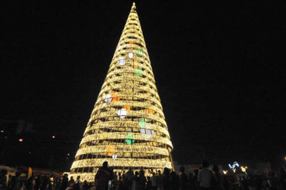 Árvore de Natal em uma rua da cidade de Santo Domingo, na República Dominicana.