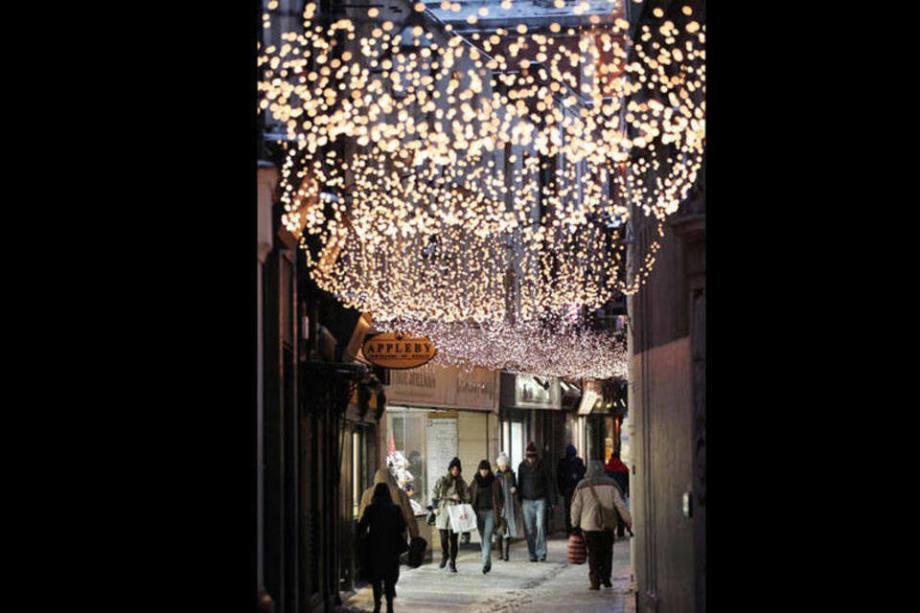 Irlanda: rua em Dublin foi decorada com diversas luzes no ar.
