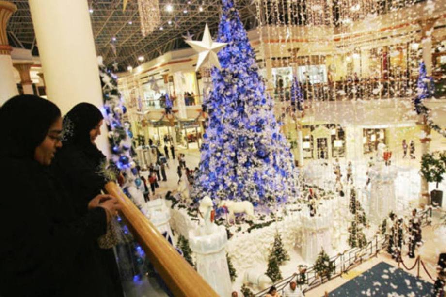 Decoração natalina em um dos principais centros comerciais de Dubai, Emirados Árabes.