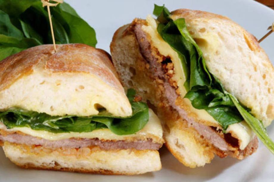 Restaurante: 210Diner Sanduíche: Bife Schntzel Preço: 29 reais Ingredientes: Bife a milanesa, rúcula, tomate confitado, emmental e molho mostarda dijon Endereço: R. Pará, 210 - Higienópolis – Tel: (11) 3661-1754