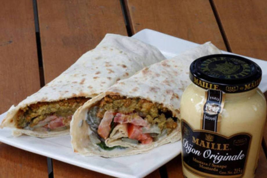 Restaurante: Suqueria Sanduíche: Veggie Preço: 15 reais Ingredientes: Wrap integral, molho rose, rúcula, tomate, cenoura, beterraba e queijo branco. Acompanha um suco de melancia, com gengibre opcional Endereço: R. Wisard, 386 - Vila Madalena – Tel: (11) 3562-3023