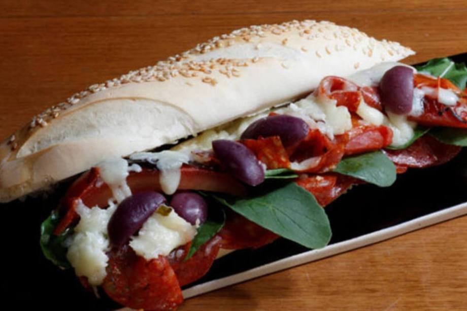 Restaurante: Vino! Sanduíche: Polpettone na Foccacia Preço: 15 reais Ingredientes: Polpettone ao pomodoro na foccacia com muçarela de búfala e rúcula Endereço: R. Prof. Tamandaré de Toledo, 51 – Itaim Bibi – Tel: (11) 3078-6442