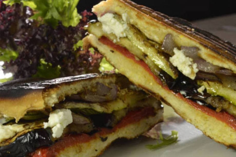 Restaurante: Fiore Restaurante Sanduíche: Panini Verdure Preço: 15 reais Ingredientes: Panini de legumes assados com queijo de cabra e pesto, no pão de milho Endereço: R. Santa Justina, 97 - Vila Olímpia – Tel: (11) 3889-9900 ou (11) 3842-2630