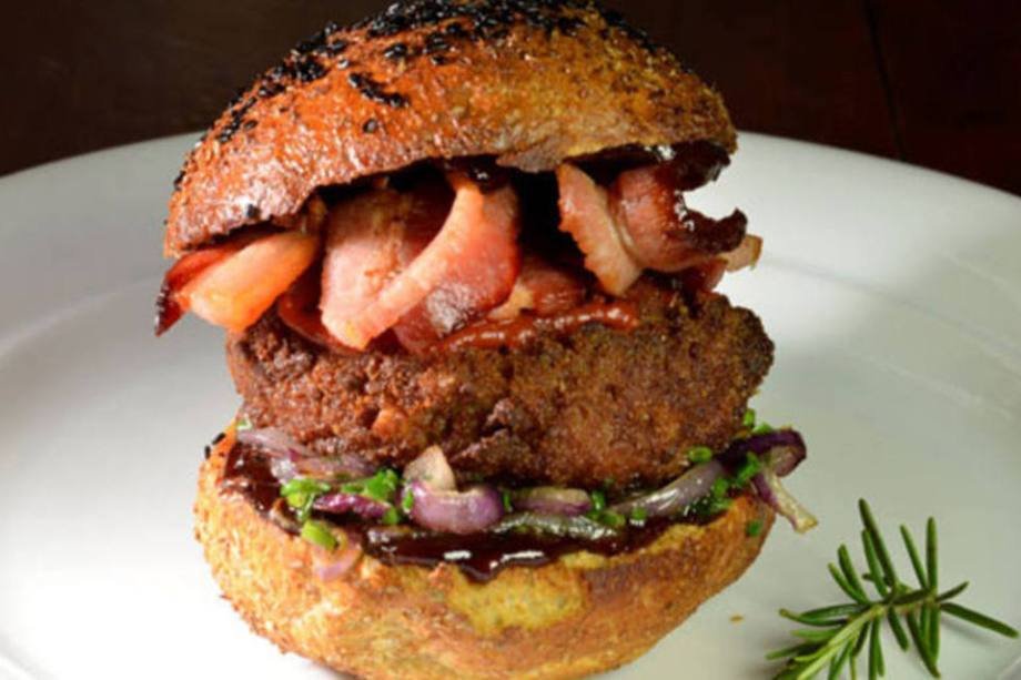 Restaurante: Rock’n’Roll Burger Sanduíche: Raulzito Preço: 22 reais Ingredientes: Cupim cozido lentamente com cerveja preta e desfiado, cebola roxa puxada no melaço de cana, queijo coalho do mestre queijeiro e bacon, na ciabatta Endereço: R. Augusta, 538 – Consolação – Tel: (11) 3255-0351