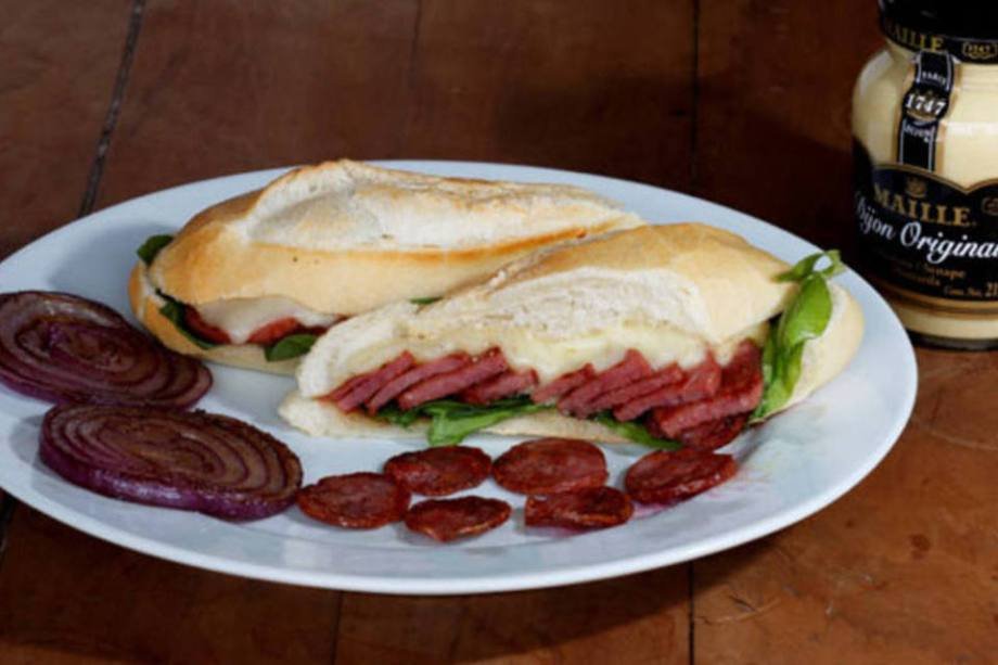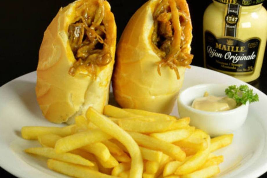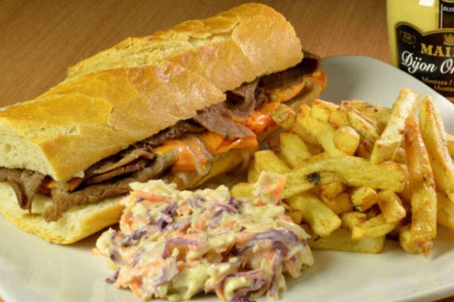 Restaurante: Na Mata Café Sanduíche: Philadelphia Cheese Steak Preço: 35,90 reais Ingredientes: Clássico americano, sanduíche de carne, queijo e cebolas chapeadas servido no pão francês, acompanhado de fritas e cole slaw Endereço: R. da Mata, 70 - Itaim Bibi – Tel: (11) 3079-0300