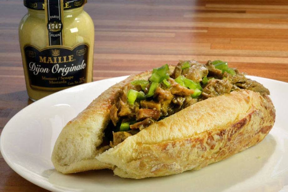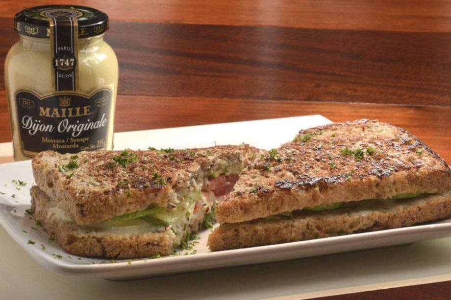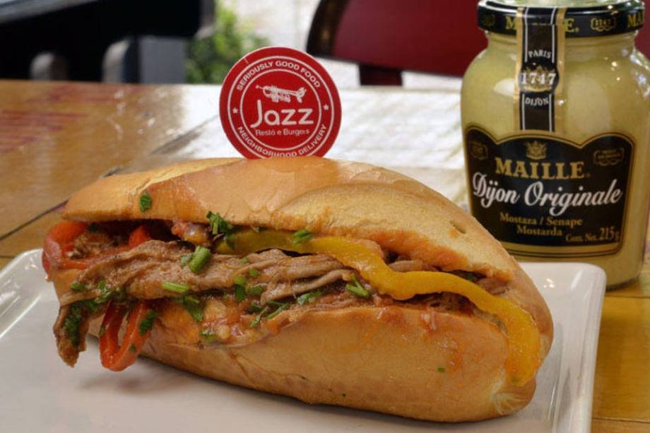 Pernil, molho vinagrete e mostarda Dijon Maille, no pão francês especial Peixonauta – R$ 33,70