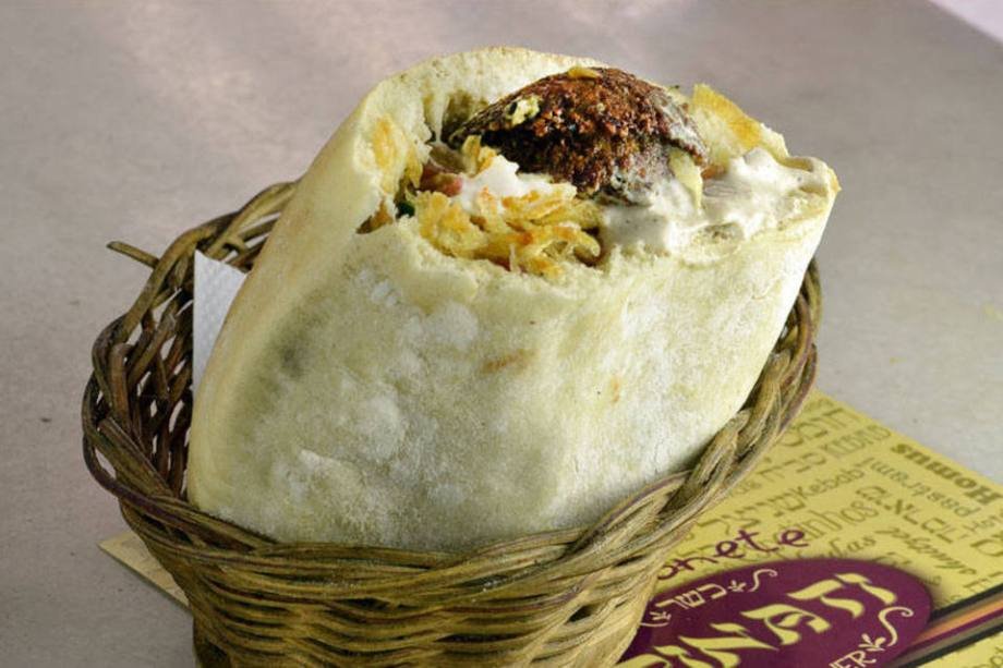 Servido no pão lafa artesanal(pão folha), as delícias israelenses em um único sanduíche. Shawarma de frango, tiras de carne, shnitzel (filé de frango empanado com gergelim), vurcht (salame defumado), com homus, tehine, ovo e palha da casa. Uma verdadeira explosão de sabores! Endereço: Alameda Barros, 782, Higienópolis