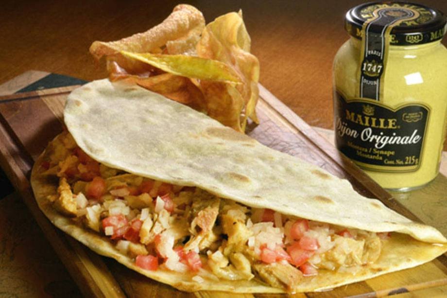 Massa de piadina recheada de pernil assado e vinagrete. San Marino – R$ 36