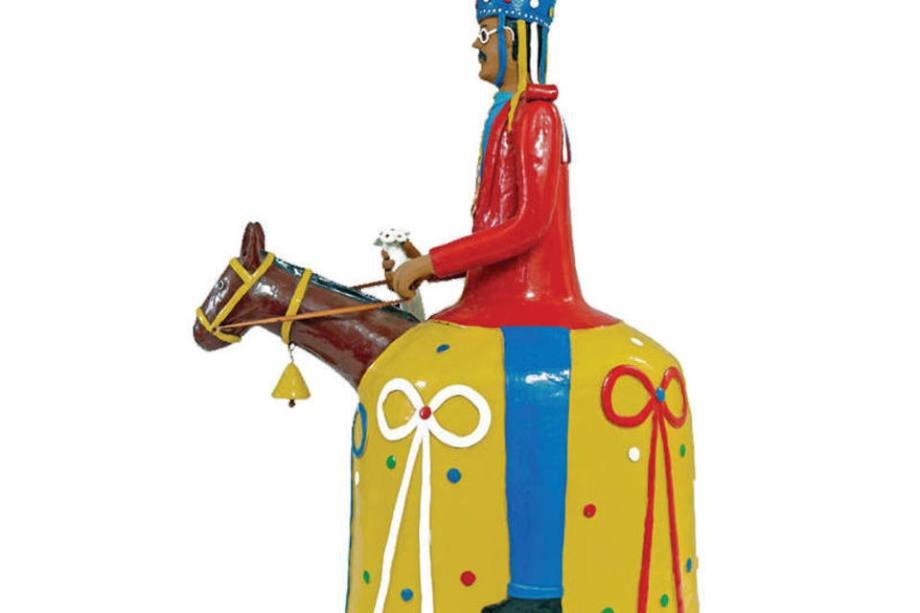 Em cores vibrantes, as esculturas de madeira de José Cícero da Silva, o Zezinho, sugeremmovimento. As histórias ouvidas na infância em Arapiraca, AL, influenciam seu repertório lúdico