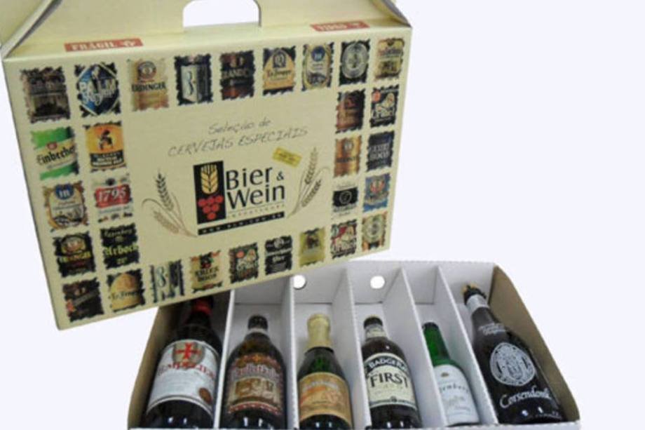 A importadora de cervejas Bier & Wein montou um kit de rótulos para facilitar a vida de quem deseja experimentar novos sabores. Periodicamente, as marcas presentes em cada caixa são trocadas. Neste mês, o kit de seis garrafas traz opções claras e escuras, com diferentes tipos de fermentação e de notas que compõem o sabor. Os rótulos são Badger First Gold, Lindemans Pecheresse, Eggenberg Hopfenkönig, Paulistânia Escura, Corsendonk Tempelier e Corsendonk Agnus Tripel. O valor é 138 reais.