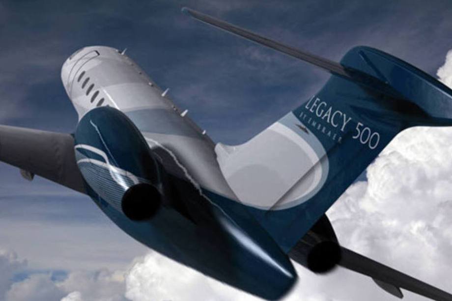 7/10  (Divulgação) 	Entre outros modelos, a Embraer levou para a feira o Legacy 500, que faz sua primeira aparição pública no Brasil, após ser apresentado em Genebra, na Suíça. A aeronave só deverá entrar em operação no primeiro semestre de 2014 e o preço deve girar em torno de 20 milhões de dólares.	Neste avião de médio porte, a empresa aplicou conceitos de aeronaves maiores, trazendo mais conforto e tecnologia para os viajantes e pilotos. O Legacy 500 tem capacidade para oito passageiros e alcance de mais de quatro mil quilômetros.
