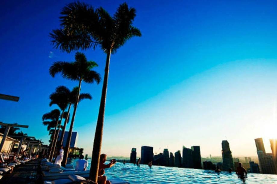 Um dos destaques do Marina Sand Bay, hotel que imita um cruzeiro em Cingapura, é esta piscina, da qual é possível ter uma vista de toda a cidade. Os números são de impressionar. Ela tem 150 metros de comprimento e está a 200 metros de altura. O hotel em que ela está localizada comporta 4 mil hóspedes, servidos por cerca de 7 mil funcionários.
