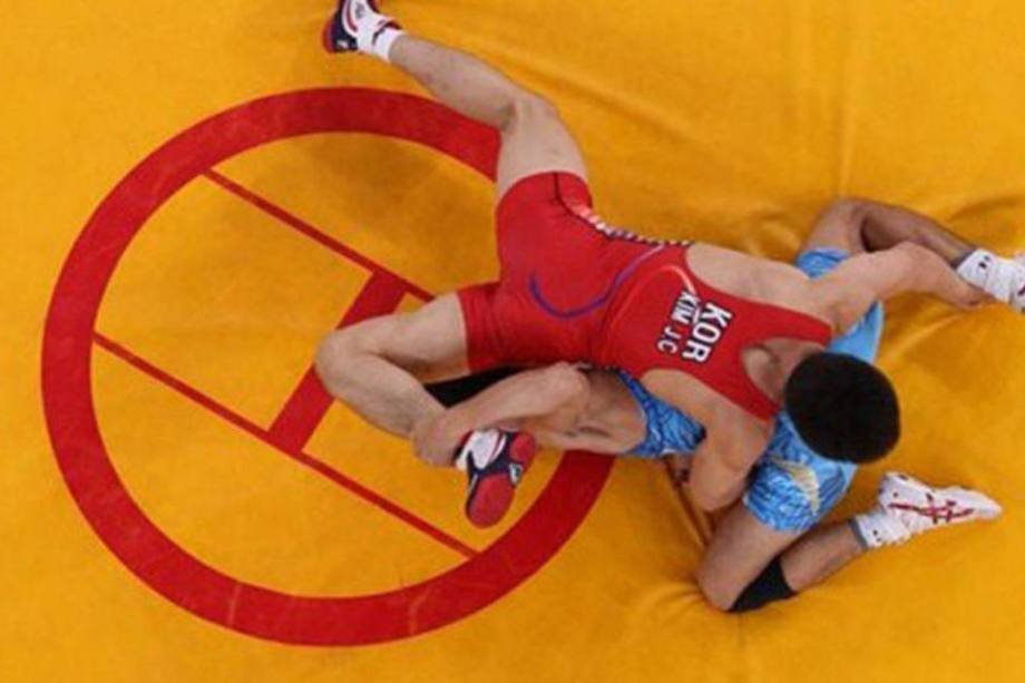 56. Lutadores ou contorcionistas?: esse ângulo da luta greco-romana dá uma ideia da preparação corporal dos atletas para a competição