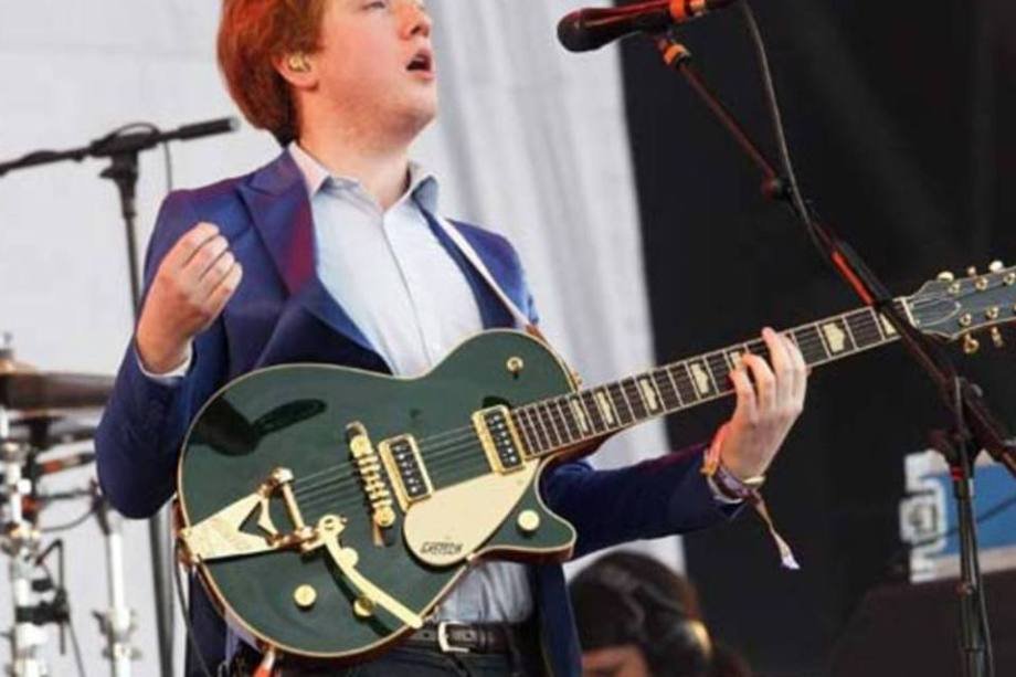 10. Alex Trimble, da banda britânica Two Door Cinema Club, toca para os fãs
