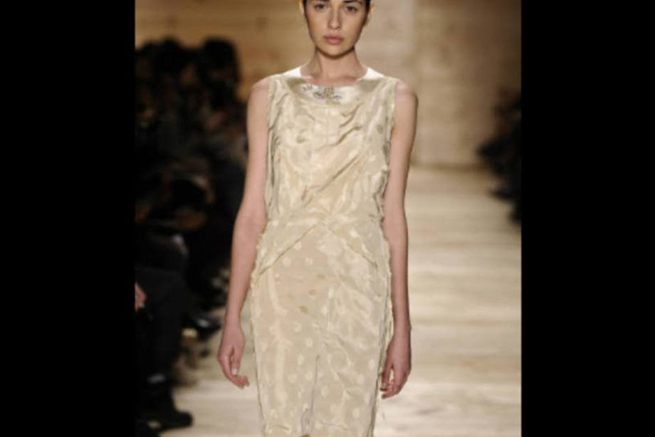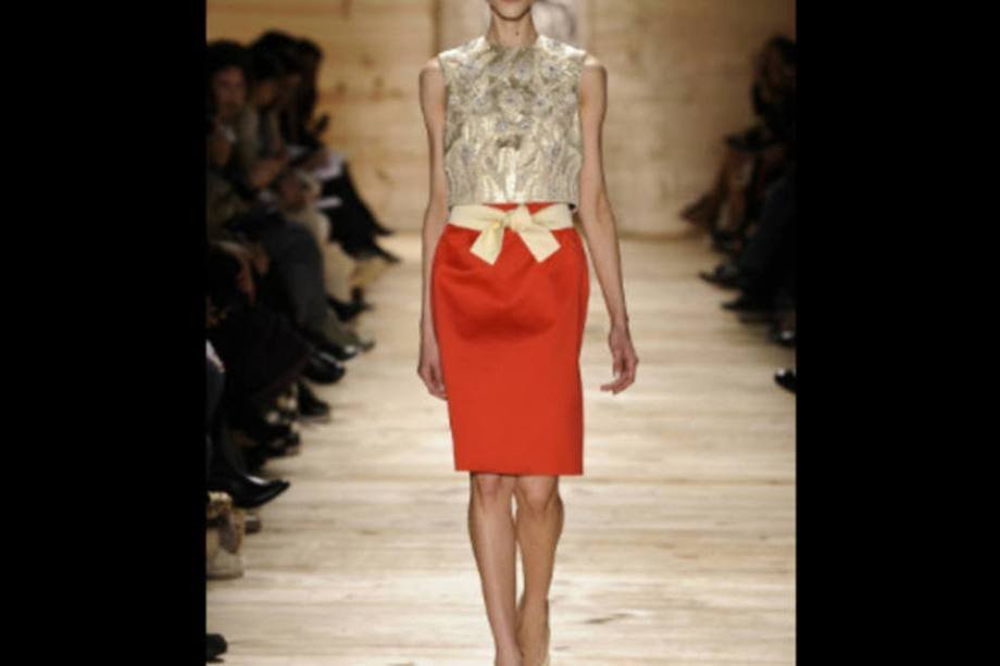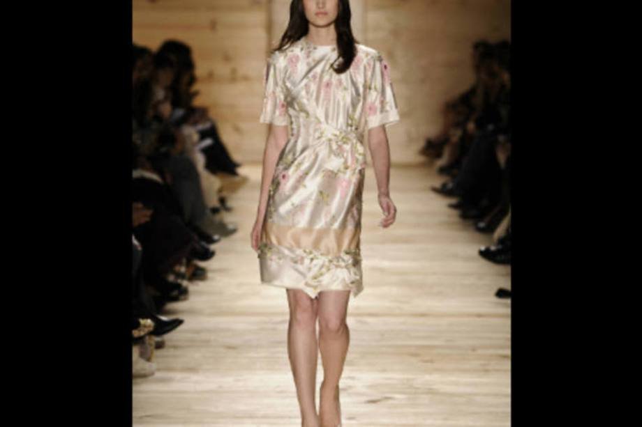 As saias de pregas largas, com volume e cintura marcada, e os bodies de lingerie florais resumem a proposta do estilista, que buscou resgatar técnicas de costura dos anos 40 e 50.