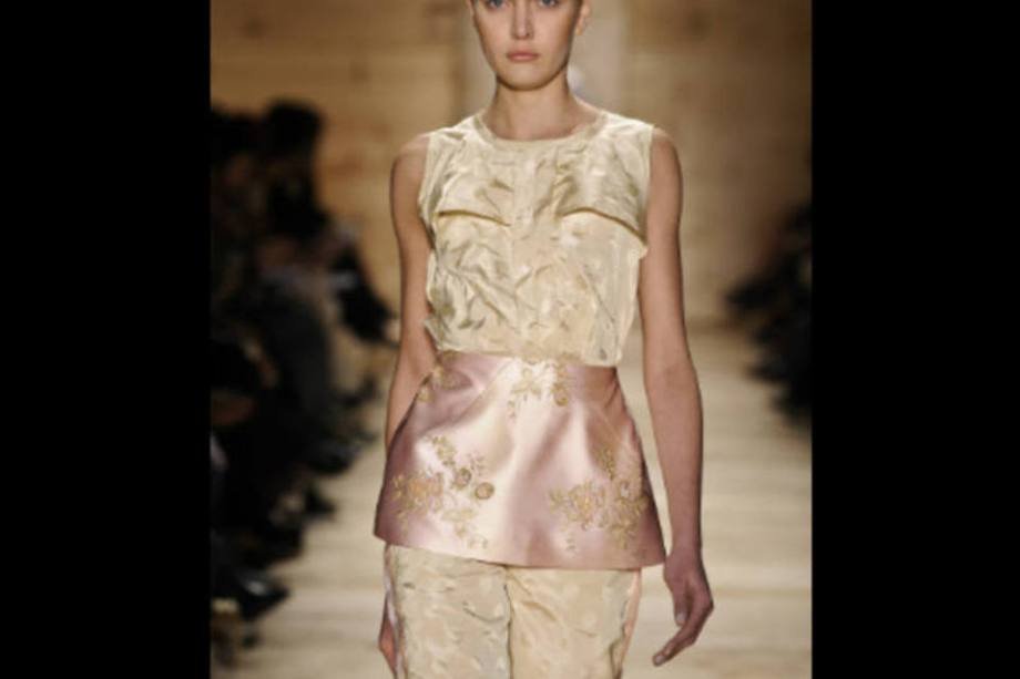 Os bordados em grande quantidade, o cetim predominante, cinturas altas bem marcadas, laços e as golas e mangas arredondadas deram uma cara oriental para os looks.