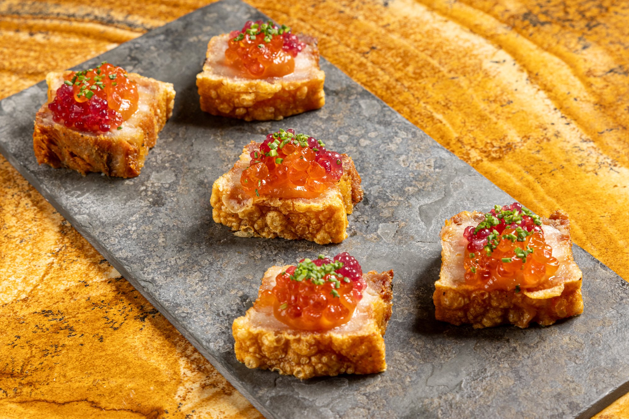 Destaques do cardápio incluem a porção de minicoxinhas (R$ 36), com recheio super cremoso, e a croqueta de carne seca com abóbora (R$ 39). A panceta defumada com creme de cupuaçu, ovas de cebola e ovas de salmão (R$ 61) também chama a atenção.