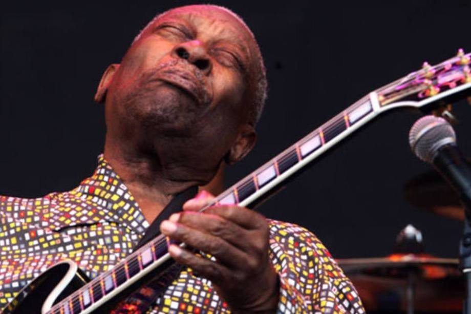 3. 3º: B. B. King (1925). Também conhecido como o Rei do Blues, o guitarrista B. B. King (uma abreviação de Blues Boy King) se destaca por seus solos com poucas notas. Ele começou a carreira tocando na esquina de uma igreja e aos sábados à noite, para ganhar dinheiro. Hoje, é o terceiro maior guitarrista de todos os tempos.