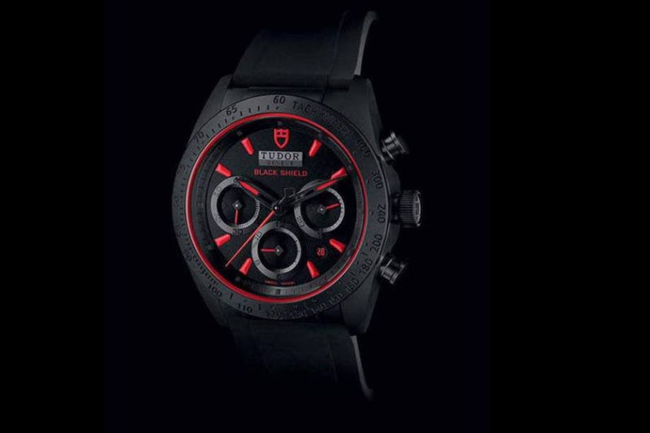 Tudor Fastrider Black Shield, um relógio inspirado nas motocicletas Ducati, conta com uma caixa monobloco em cerâmica com detalhes em vermelho. Resistente a riscos, ela é produzida a partir de uma única peça de cerâmica de alta tecnologia. Os detalhes vermelhos são complementados pelo selo da marca na posição de 12 horas.